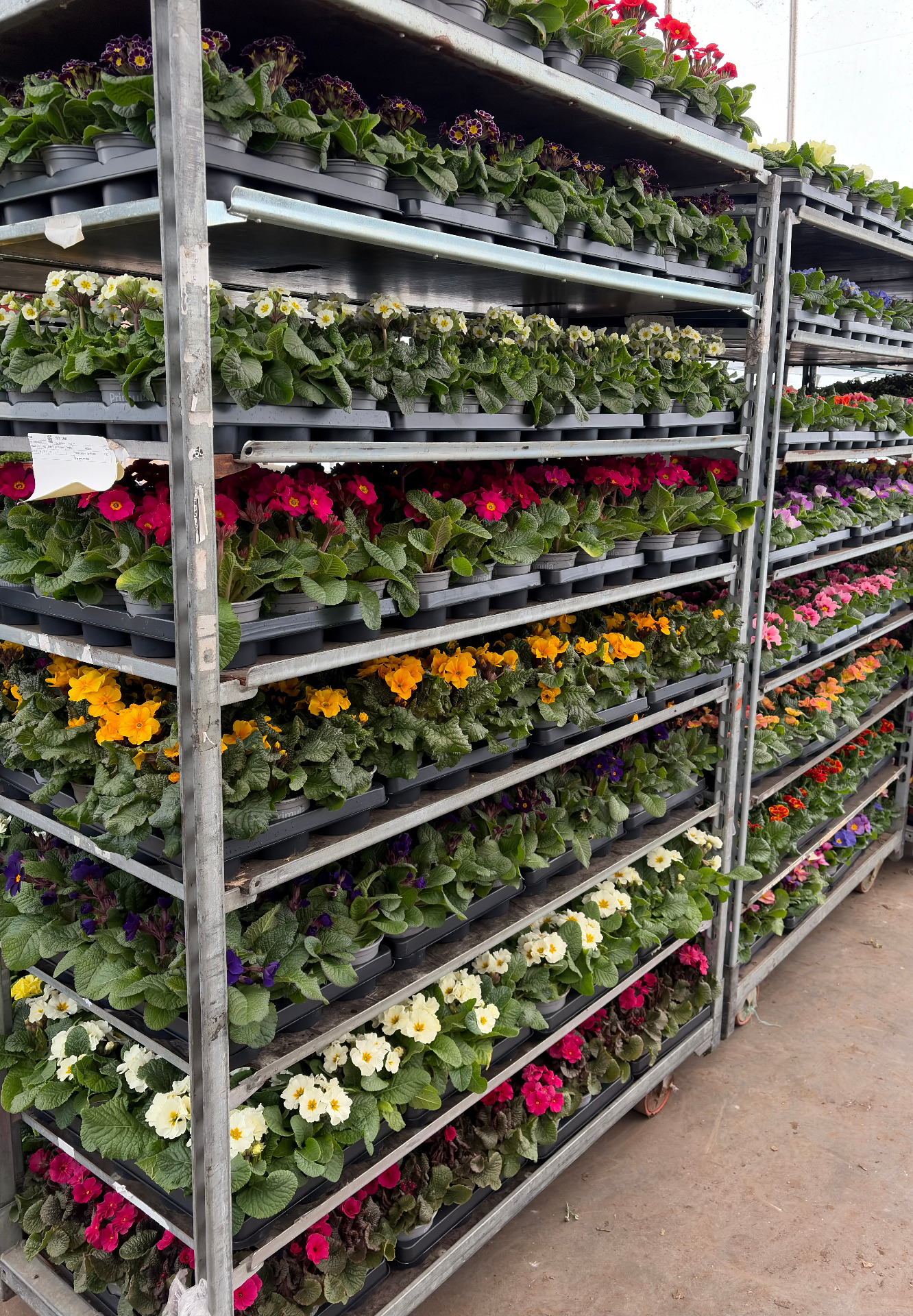 Een mix van Primula acaulis, vulgaris, dubbele en speciale variëteiten.